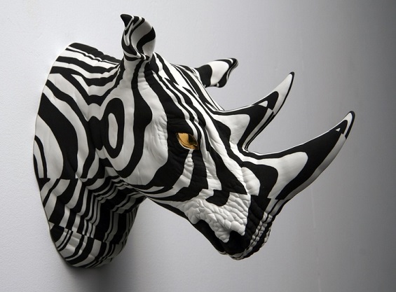 Addressing the off-balanced relationship between man and beast, Korean artist Wookjae Maeng creates eerie ceramic animal head sculptures in prints often found in our own homes.
